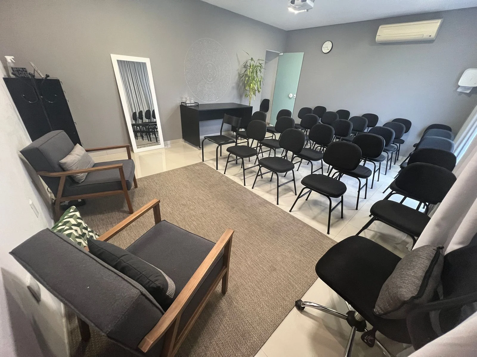 Ambiente silencioso, ideal para grupos terapêuticos e práticas profundas.